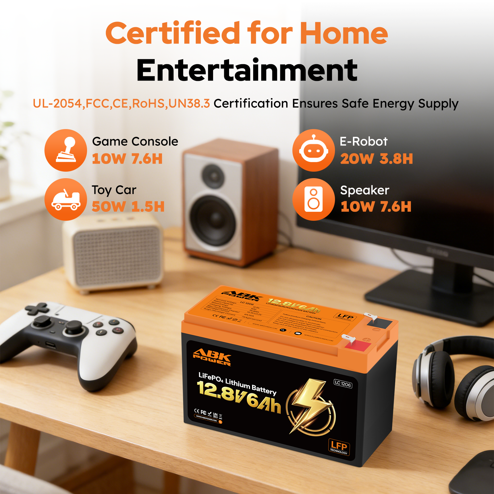 ABKpower 12V 6Ah LiFePO4 Battery, 76.8Wh Deep Cycle Rechargeable Battery